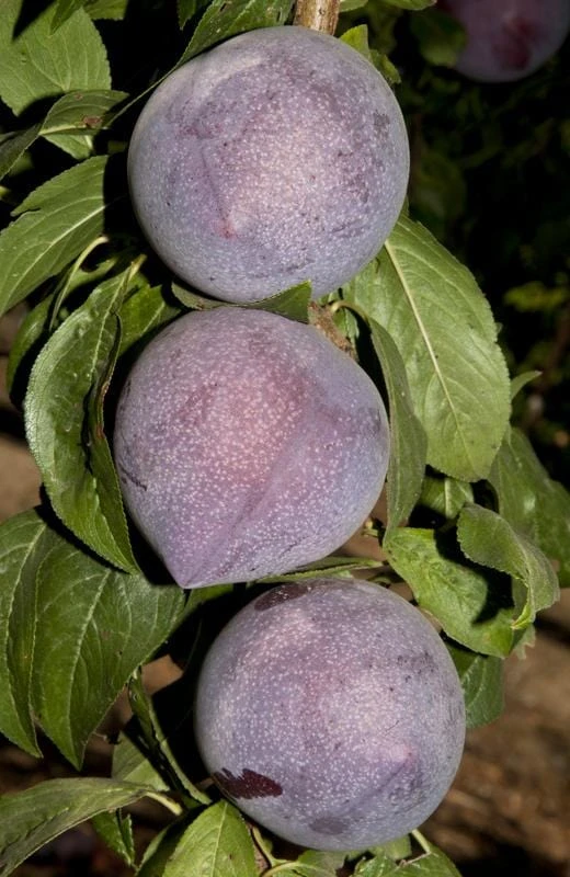 Famed fruit breeder Floyd Zaiger has crossed a cherry with a Japanese plum to create a wonderful new fruit he calls a Pluerry. Candy Heart’s skin is dark speckled red and the delicious and uniquely flavored flesh is amber/red. It ripens after most cherries and Japanese plums and is pollinized by the Sweet Treat Pluerry or a later blooming Japanese Plum. Until very recently Cherry Plums were just a name for small plums, but now we have true crosses that incorporate cherry flavor into what looks like a plum.